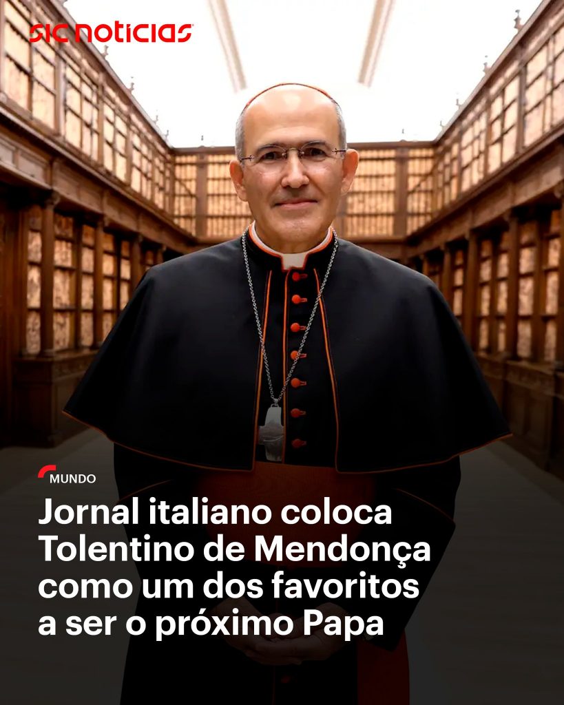 A SIC Notícias dá conta do seguinte aqui para mim: Apesar de ser o mais novo entre os principais favoritos, o português [Dom Tolentino] é considerado uma figura de grande peso, estando “entre os cardeais mais conhecidos, com um forte perfil cultural e capacidade de atingir um vasto público”, destaca o jornal italiano La Repubblica.