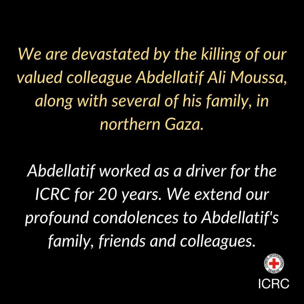 Sometimes what I call “Angelic Messianism” forces me to remember our Angels who have always been on the path to help us. This is the case of Abdellatif Ali Moussa, a driver for 20 years with the International Committee of the Red Cross, killed while helping the Gaza Strip.